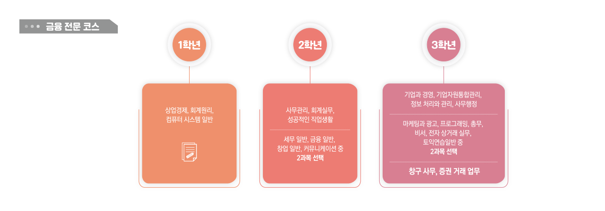 - 진학 : 회계과,세무과,경영 등 상경계열,컴퓨터 관련 학과의 4년제·2년제 대학 진학